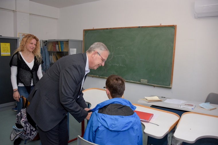 Ο Αναπληρωτής Υπουργός Εθνικής Άμυνας Πάνος Ρήγας συνοδευόμενος από τον Αρχηγό ΓΕΣ Αντιστράτηγο Γεώργιο Καμπά, επισκέφθηκε σήμερα Τρίτη 2 Απριλίου 2019 το Ειδικό Γυμνάσιο-Λύκειο Ιλίου, όπου με τη συνδρομή του Υπουργείου Εθνικής Άμυνας διά του Γενικού Επιτελείου Στρατού πραγματοποιούνται εργασίες συντήρησης – ανακατασκευής των υποδομών των κτηρίων που φιλοξενούν το Σχολείο.