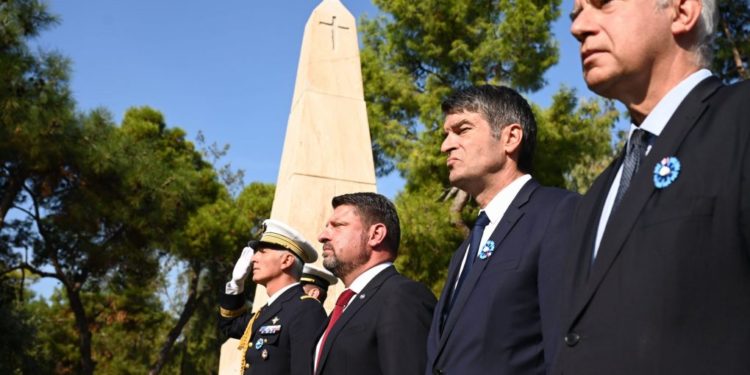 Στην εκδήλωση εορτασμού της επετείου ανακωχής του Α΄ Παγκοσμίου Πολέμου, η οποία διοργανώθηκε από τη Γαλλική Πρεσβεία στο Γαλλικό τμήμα του Συμμαχικού Κοιμητηρίου στον ‘Αλιμο, παρέστη, σήμερα, Παρασκευή 11 Νοεμβρίου, ο ΥΦΕΘΑ Νίκος Χαρδαλιάς.