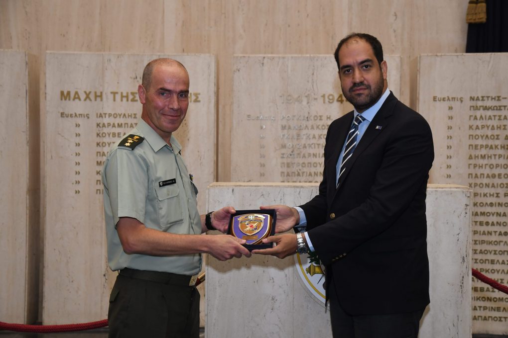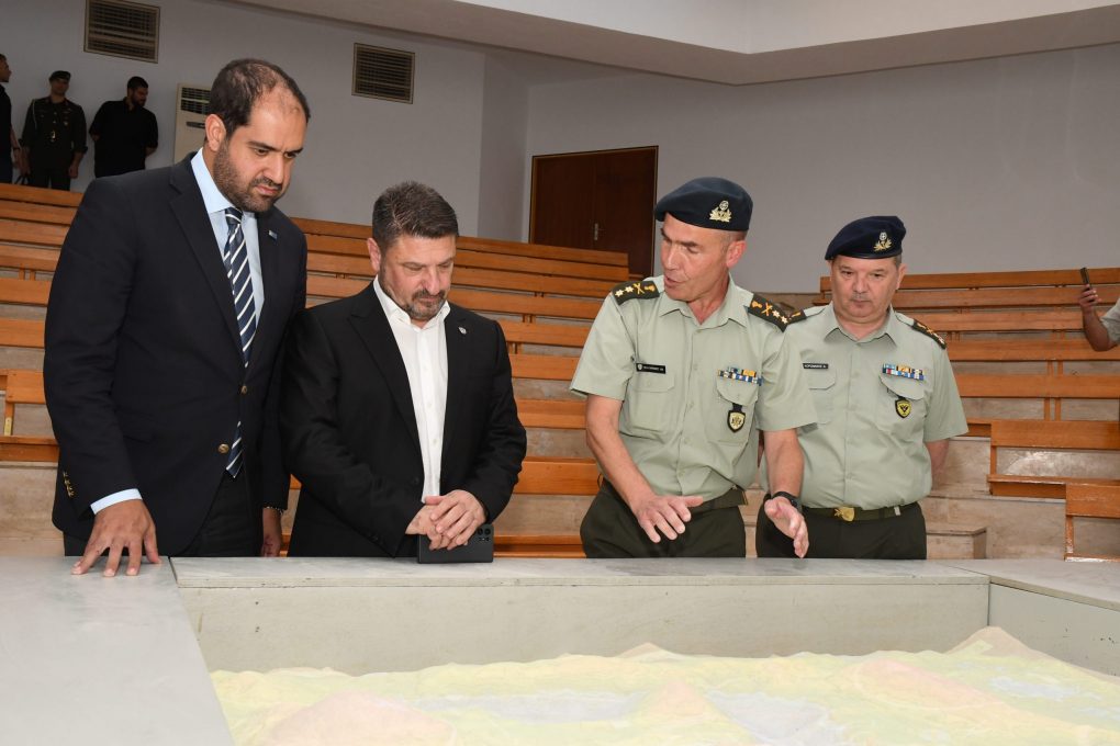 Στη συνέχεια οι Υφυπουργοί Εθνικής Άμυνας κ.κ. Ιωάννης Κεφαλογιάννης και Νικόλαος Χαρδαλιάς συνοδευόμενοι από τον Υπαρχηγό ΓΕΣ Αντιστράτηγο Ανδρέα Κορωνάκη επισκέφτηκαν τη Στρατιωτική Σχολή Ευελπίδων (ΣΣΕ). Κατά την επίσκεψή τους οι κ.κ Υφυπουργοί ενημερώθηκαν από τον Διοικητή Υποστράτηγο Αναστάσιο Πολύχρονο για την ιστορία, την αποστολή, τη διάρθρωση της στρατιωτικής και ακαδημαϊκής εκπαίδευσης, καθώς και για το σύνολο των δράσεων της Σχολής.