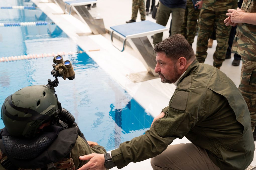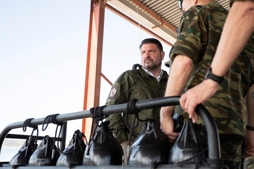 Επίσης, O ΥΦΕΘΑ ενημερώθηκε και επιθεώρησε την πρόοδο των εργασιών αναβάθμισης του λιμένα του ΚΕΕΔ (εμβάθυνση και επέκταση του υφιστάμενου λιμενοβραχίονα) και την κατασκευή των νέων κτιριακών υποδομών, που θα καλύψουν τις τρέχουσες επιχειρησιακές απαιτήσεις και την ενιαία υποστήριξη – συντήρηση των πλωτών μέσων και του καταδυτικού εξοπλισμού, τόσο των μονάδων ειδικών επιχειρήσεων, όσο και του συνόλου των μονάδων του Στρατού Ξηράς.