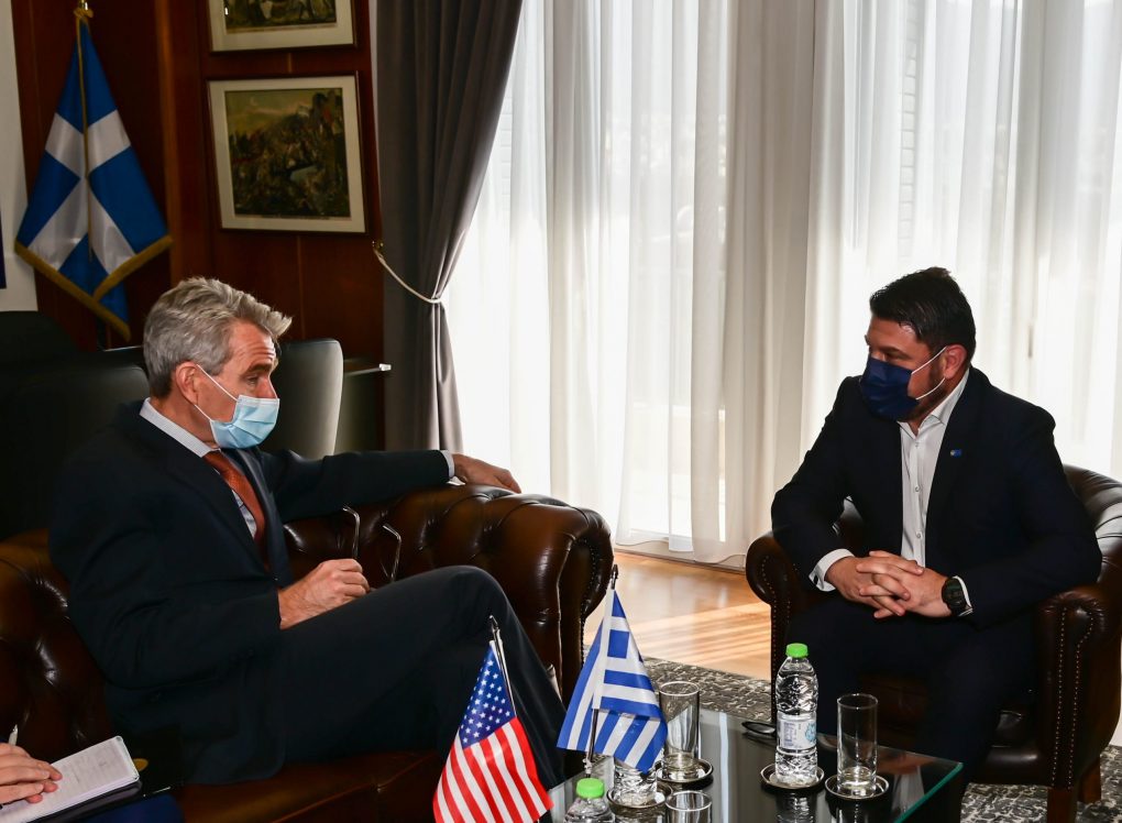 Ο ΥΦΕΘΑ κ. Νικόλαος Χαρδαλιάς συναντήθηκε σήμερα, Παρασκευή 4 Μαρτίου 2022, στο Υπουργείο Εθνικής Άμυνας, με τον Πρέσβη της Αμερικανικής Πρεσβείας στην Ελλάδα κ. Geoffrey R. Pyatt.