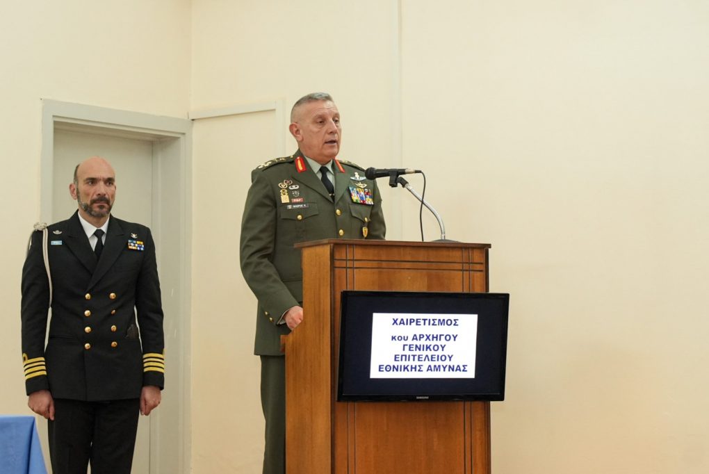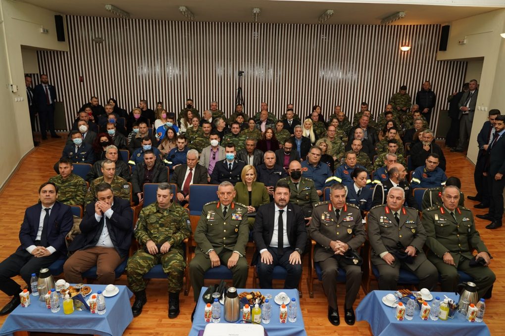 Στην εκδήλωση κοπής της πρωτοχρονιάτικης πίτας της Λέσχης Εφέδρων Ενόπλων Δυνάμεων (Λ.ΕΦ.Ε.Δ.) Αττικής, που πραγματοποιήθηκε στο αμφιθέατρο της Σχολής Διαβιβάσεων, στο στρατόπεδο «Γεώργιος Καραϊσκάκης Α’», στο Χαϊδάρι, παρέστη σήμερα ο ΥΦΕΘΑ Νίκος Χαρδαλιάς, συνοδευόμενος από τον Α/ΓΕΕΘΑ.