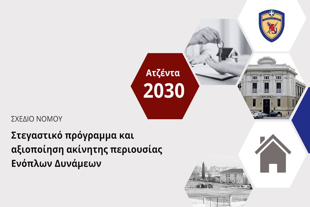 Τέθηκε σε δημόσια ηλεκτρονική διαβούλευση (https://www.opengov.gr/mindefence/?p=7191), το βράδυ της Πέμπτης 3 Ιουλίου 2025, το σχέδιο νόμου του ΥΠΕΘΑ, υπό τον τίτλο «Αξιοποίηση ακίνητης περιουσίας Ενόπλων Δυνάμεων – Σύσταση Ταμείου Ακινήτων Εθνικής Άμυνας και Φορέα Αξιοποίησης Ακινήτων Ενόπλων Δυνάμεων – Σχέδιο δράσεων για τη διαχείριση των στεγαστικών αναγκών των στελεχών των Ενόπλων Δυνάμεων».