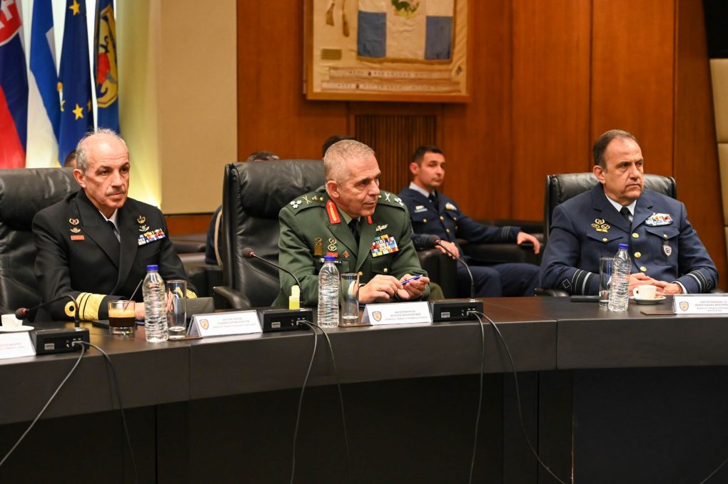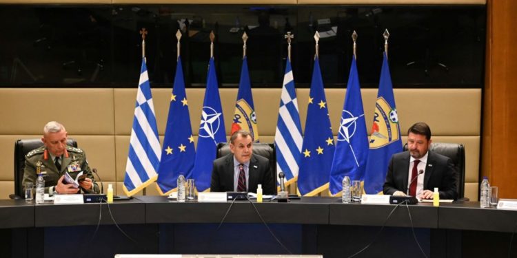 Ο Υπουργός Εθνικής Αμύνης κ. Νικόλαος Παναγιωτόπουλος, ο Υφυπουργός Εθνικής Αμύνης κ. Νικόλαος Χαρδαλιάς και ο Αρχηγός ΓΕΕΘΑ Αντιστράτηγος Κωνσταντίνος Φλώρος παρέστησαν σήμερα, Πέμπτη 20 Απριλίου 2023, στην παρουσίαση του Οδικού Χάρτη για τον περιορισμό των επιπτώσεων και την προσαρμογή των Ενόπλων Δυνάμεων στην Κλιματική Αλλαγή, που πραγματοποιήθηκε στην Αίθουσα Συνεδριάσεων «Ιωάννης Καποδίστριας» του ΥΠΕΘΑ.