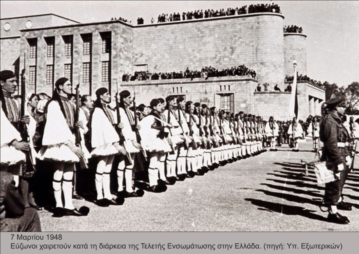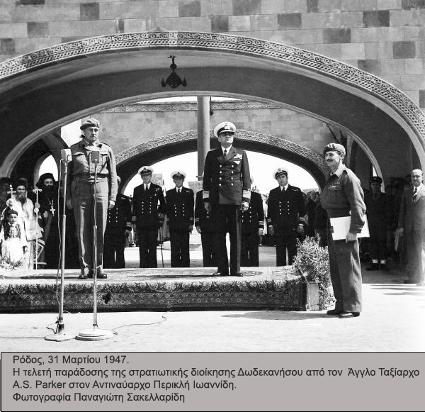 Στις 10 Φεβρουαρίου 1947 υπογράφηκε στο Παρίσι η Συνθήκη Ειρήνης με την Ιταλία, σύμφωνα με την οποία τα Δωδεκάνησα αποδίδονταν στην Ελλάδα. Η τελετή παράδοσης των Δωδεκανήσων στην Ελλάδα από τις βρετανικές αρχές έλαβε χώρα στις 31 Μαρτίου 1947, στη Ρόδο, μέσα σε πανηγυρική ατμόσφαιρα. Την ημέρα εκείνη, ο Άγγλος Ταξίαρχος Parker υπέγραψε το πρωτόκολλο παράδοσης.