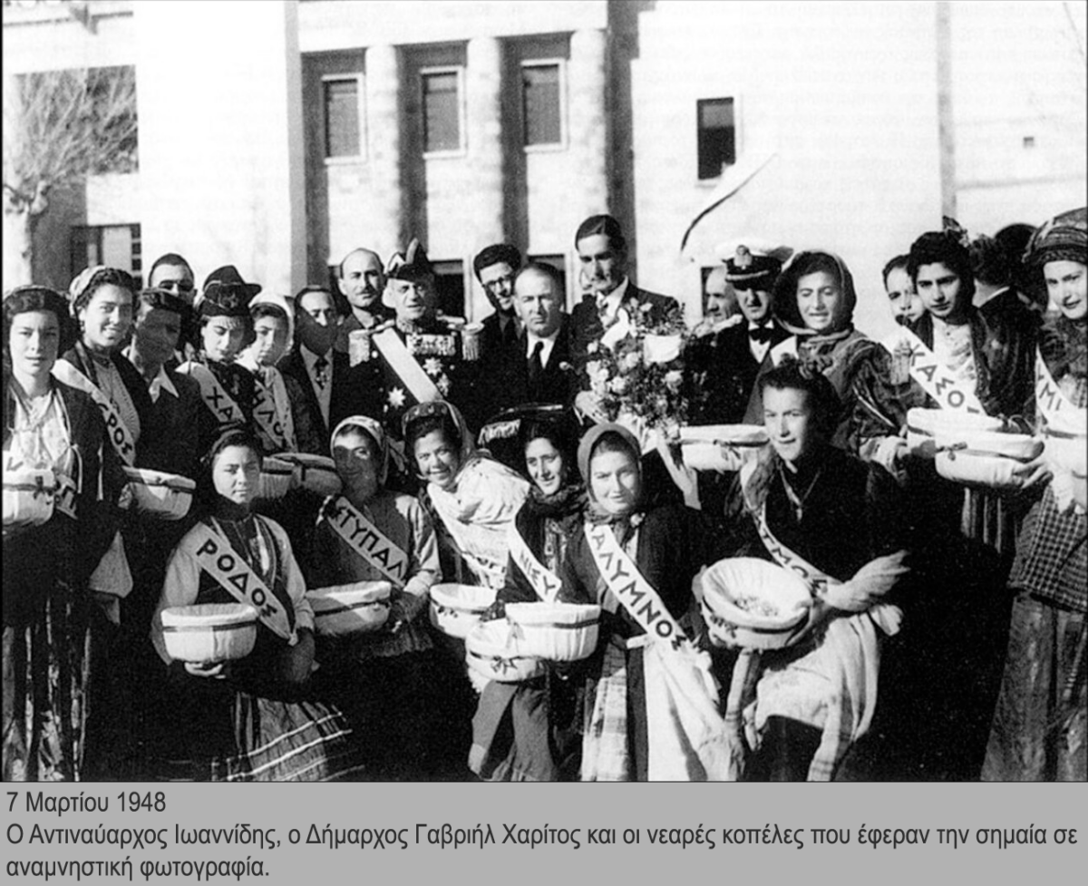 Πρώτος διοικητής των Δωδεκανήσων ανέλαβε ο Αντιναύαρχος Περικλής Ιωαννίδης, με πολιτικό σύμβουλο τον Μιχαήλ Στασινόπουλο, μετέπειτα Πρόεδρο της Ελληνικής Δημοκρατίας. Η ενσωμάτωση της Δωδεκανήσου στην Ελλάδα επισφραγίστηκε επισήμως στις 7 Μαρτίου 1948, παρουσία των πολιτειακών και πολιτικών αρχών του ελληνικού κράτους.