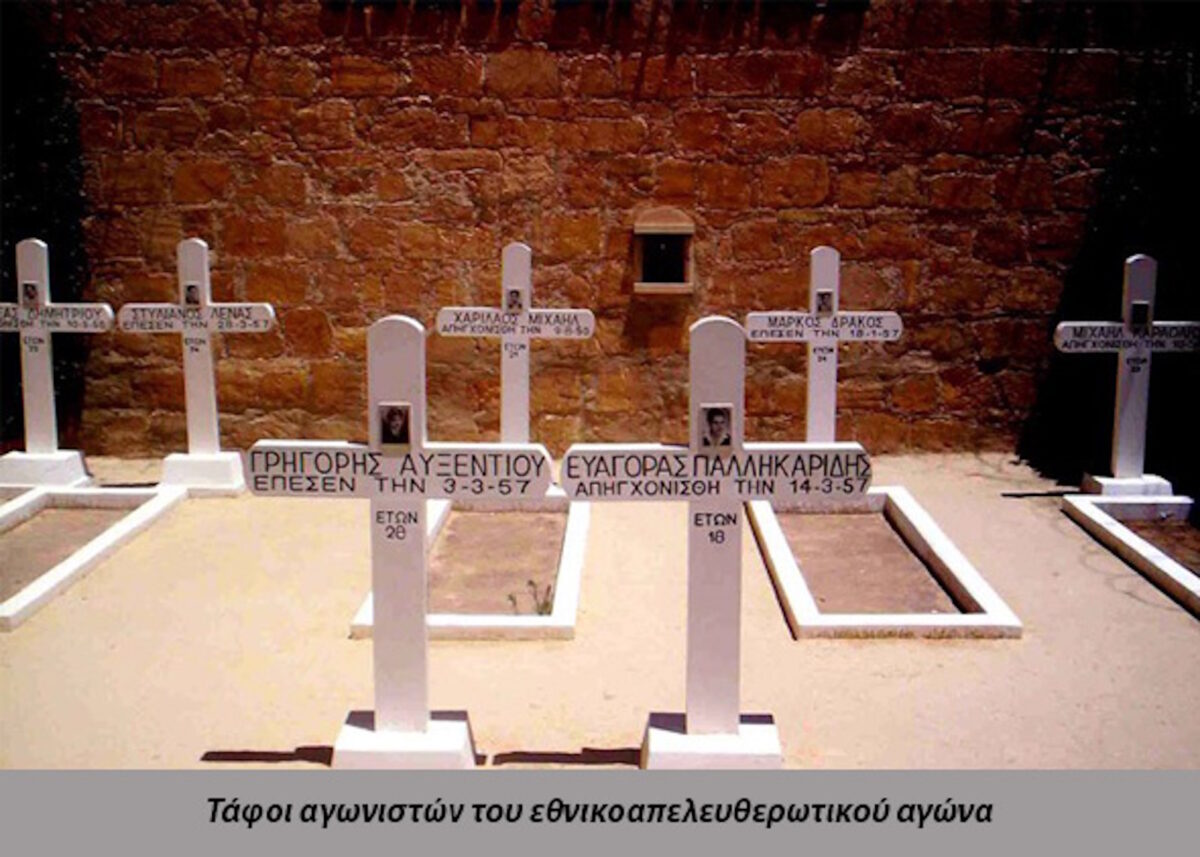 Εκεί αναπαύονται ο σταυραετός του Μαχαιρά, Γρηγόρης Αυξεντίου, και ο λόγιος του Αγώνα, Κυριάκος Μάτσης, φωτίζοντας τον δρόμο του εθνικού χρέους. Μαζί τους κείτονται ο Μάρκος Δράκος και ο Στυλιανός Λένας. Πολλοί οι ήρωες, όπως οι μάρτυρες του Αχυρώνα του Λιοπετρίου, Ανδρέας Κάρυος, Φώτης Πίττας, Ηλίας Παπακυριακού, Χρίστος Σαμάρας, και πολλά ακόμα παλληκάρια της Κύπρου, οι οποίοι έγιναν πρότυπα αυτοθυσίας και ηρωισμού και εισήλθαν επάξια στο πάνθεο των ηρώων του γένους μας.