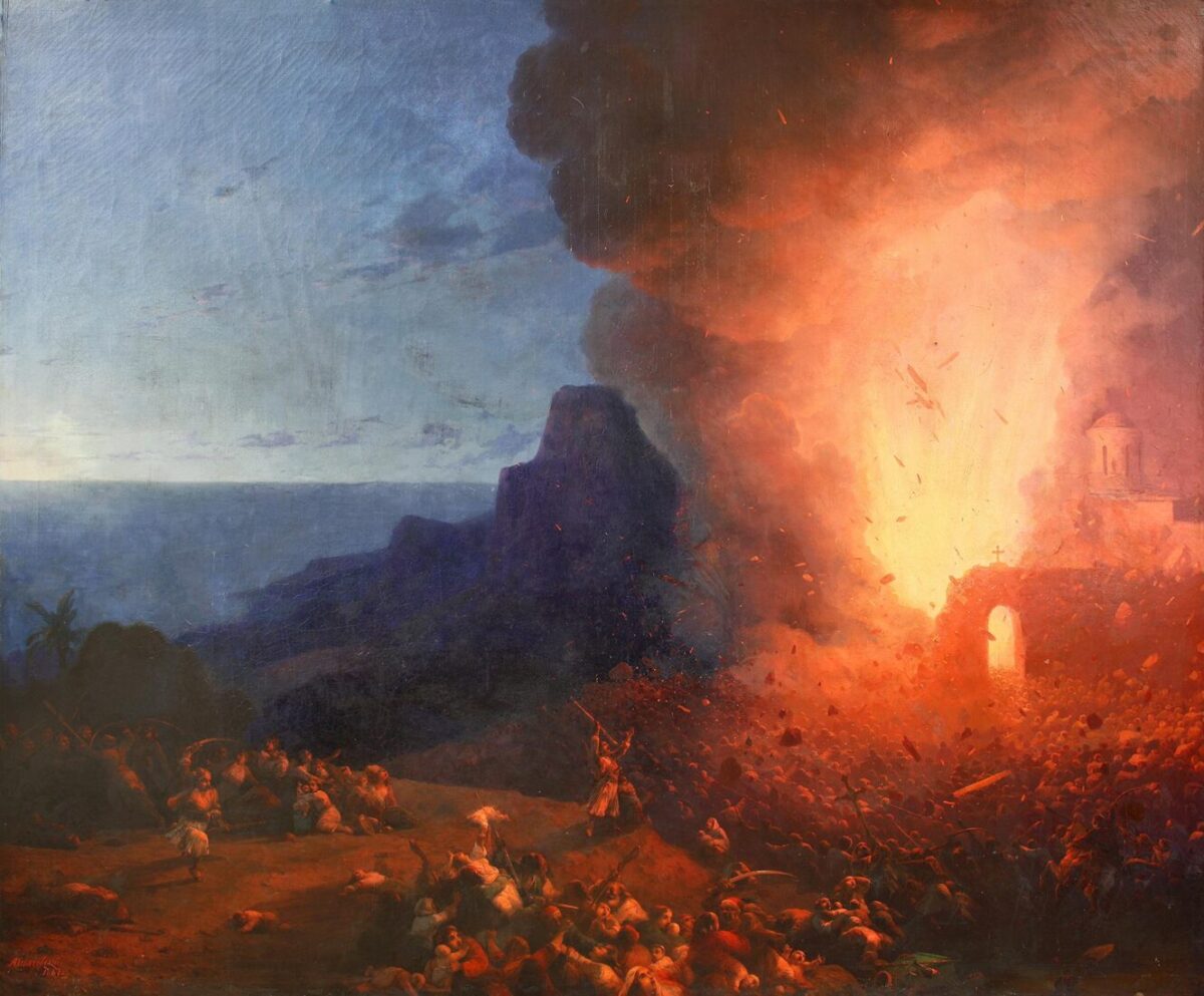 Κάποιοι άνδρες βρήκαν καταφύγιο στην τραπεζαρία του Μοναστηριού και σε άλλους χώρους. Όταν οι Τούρκοι έφτασαν στην πόρτα της πυριτιδαποθήκης, οι Έλληνες πραγματοποίησαν την ηρωικότερη πράξη, καθώς με τη βοήθεια του Γιαμπουδάκη έβαλαν φωτιά στα βαρέλια με την πυρίτιδα, θυσιάζοντας τον εαυτό τους και συνάμα θανατώνοντας πολλούς Τούρκους. Η πράξη αυτή μαρτυρά την αυτοθυσία και την αγάπη των Ελλήνων αγωνιστών για μια ελεύθερη Πίστη και Πατρίδα.