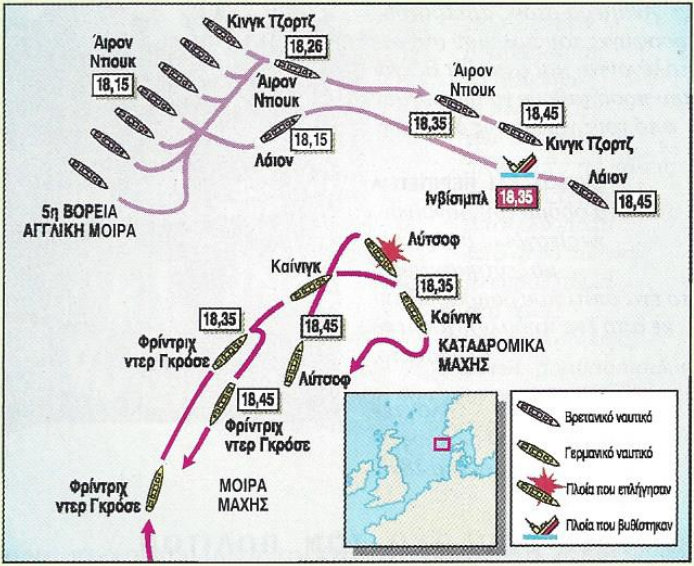 Τα καταδρομικά του Χίπερ επιχειρούν ένα ακόμη χτύπημα, το βρετανικό «Ινβίνσιμπλ» του πλοιάρχου Χουντ περικυκλώνεται από το «Ντέρφλινγκερ» και το «Λίτσοφ» και βυθίζεται μαζί με τον καπετάνιο του.