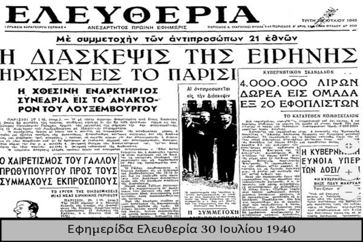 Η Συνδιάσκεψη Ειρήνης στο Παρίσι άρχισε τις εργασίες της στις 29 Ιουλίου 1946 και είχε πρωταρχικό στόχο τον καθορισμό διεθνών συνθηκών οι οποίες θα διευθετούσαν τις εκκρεμότητες μεταξύ νικητών και ηττημένων του Β΄ Παγκοσμίου Πολέμου και οι συμφωνίες που επιτεύχθηκαν, υπογράφτηκαν μετά από μερικούς μήνες στη Συνθήκη Ειρήνης, την 10η Φεβρουαρίου 1947.