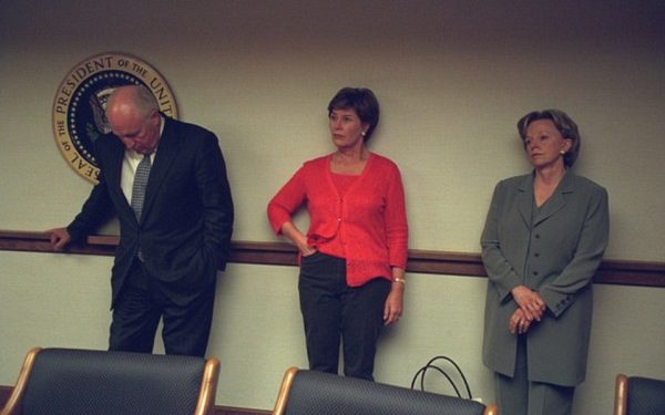 Με τα πόδια πάνω στο γραφείο, ο τότε αντιπρόεδρος των Ηνωμένων Πολιτειών παρακολουθεί σοκαρισμένος τις εικόνες από τους φλεγόμενους Δίδυμους Πύργους. Δυο αεροπλάνα που είχαν καταληφθεί από αεροπειρατές της Αλ Κάιντα είχαν, λίγη ώρα πριν, πέσει πάνω στο «καμάρι» της Νέας Υόρκης: τους Δίδυμους Πύργους.