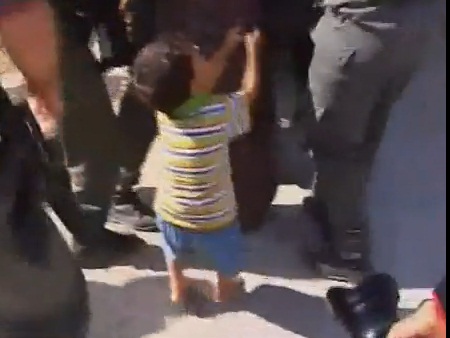 Βλέπει δύο απο αυτούς να του κάνουν κεφαλοκλείδωμα με βία και φοβάται. Το κλάμα του ραγίζει καρδιές. Ίσως όχι τις καρδιές αυτών που χτυπούν τον πατέρα του… τρέχει ξυπόλητος στο χώμα και στις πέτρες και τους προλαβαίνει πριν μπουν στο στρατιωτικό φορτηγό. Κλαίει και φωνάζει. Παρακαλάει να αφήσουν τον πατέρα του. Βάζει το μικρό κορμάκι του σαν ασπίδα ανάμεσα στους φαντάρους. Θέλει να τους εμποδίσει. Δεν μπορεί. Είναι μικρός, είναι κοντός τους φτάνει μέχρι το γόνατο. Δεν του δίνουν σημασία. Κινδυνεύει να τον πατήσουν με τα στρατιωτικά τους άρβυλα. Ένας κοντοκουρεμένος Ισραηλινός στρατιώτης. Τον πιάνει από τους ώμους και σαν πούπουλο τον σηκώνει ψηλά και τον απομακρύνει. Είναι ένας 5χρονος. Μια αμελητέα ποσότητα. Στο πλάνο φαίνεται καθαρά πως το όπλο του φαντάρου είναι μεγαλύτερο από το παιδάκι.