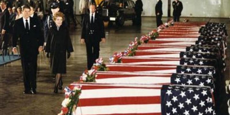 Διακόσιοι σαράντα ένας Αμερικανοί στρατιώτες (οι 220 ήταν πεζοναύτες)σκοτώθηκαν την 23η Οκτωβρίου 1983, όταν φορτηγό όχημα παγιδευμένο με 19 τόννους εκρηκτικών, ανατινάχθηκε στο χώρο του αμερικανικού στρατηγείου πολύ κοντά στο διεθνές αεροδρόμιο της Βηρυτού.