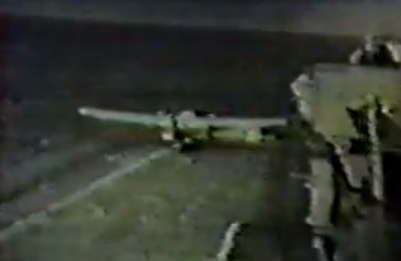 Το βίντεο είναι από πραγματικό περιστατικό. Το αεροπλανοφόρο πλέει μέσα σε απίστευτη τρικυμμία και ένα από τα αεροσκάφη του απογειώνεται. Τη στιγμή που είναι έτοιμο να «ξεκολήσει» από το διάδρομο,βρίσκεται αντιμέτωπο μ΄ ένα τεράστιο κύμα,που κυριολεκτικά «καβάλησε» το αεροπλανοφόρο και «εξαφάνισε» το αεροσκάφος. Οι πάντες «παγώνουν».Κι όμως το αεροσκάφος κρατήθηκε στον αέρα.