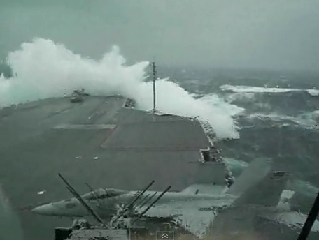 Αεροπλανοφόρο σε τρικυμία! Απίστευτα πλάνα! Δειίτε το βίντεο.