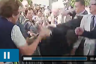 Ο Γάλλος Πρόεδρος Νικολά Σαρκοζί έκανε περιοδεία στη νοτιοδυτική Γαλλία. Στη πόλη Μπράξ, χαιρετούσε πολίτες. Κάποιος απ΄ αυτούς ήταν …πολύ τσατισμένος μαζί του. Τον άρπαξε από το πέτο και παραλίγο να τον ρίξει στο έδαφος!Ψύχραιμος ο Νικολά συνέχισε τις χαιρετούρες.