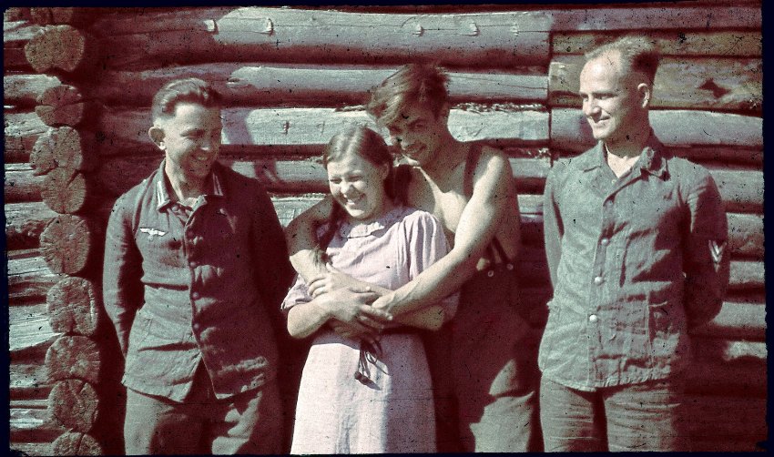 Εδώ, στρατιώτες της Βέρμαχτ ποζάρουν με ένα κορίτσι από τη Ρωσία.