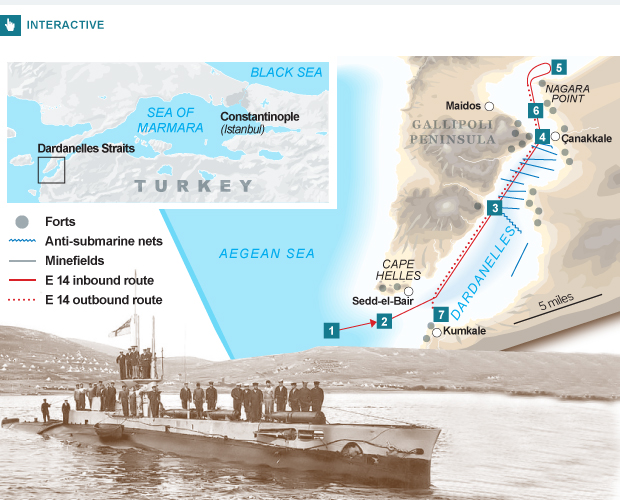 Αφού είχε σταλεί στην βαρια οχυρωμένη περιοχή των Δαρδανελίων για να τορπιλίσει την ναυαρχίδα του πολεμικού ναυτικού της Οθωμανικής Αυτοκρατορίας, το Ε14 βυθίστηκε το 1918.