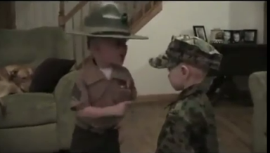 Το μπόϊ δεν κάνει τον εκαπιδευτή-λοχία. Κι εδώ θα δείτε ένας πολύ άγριο και φωνακλά! Είναι κοντός ,πολύ κοντός ,γιατί ακόμη δεν πρέπει να έχει πάει σχολείο. Ωστόσο έχει μπει μια χαρά στη στολή και το ρόλο του! Ο φιλαράκος του μικρού που κάνει τον εκπαιδευόμενο το καταλαβαίνει μια χαρά.