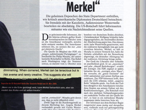 Η New York Times, έχουν συνεχή ροή με σχόλια και φράσεις ηγετών όλου του κόσμου που χρησιμοποιήθηκαν με αμερικανούς πρέσβεις ενώ το Der Spiegel, έχει αποκαλύψει ήδη το παρατσούκλι της Α. Μέρκελ. Τεφλόν!