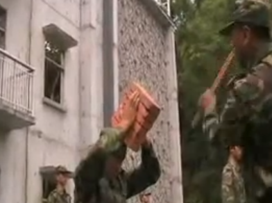 Το βίντεο δείχνει ένα μέρος της σκληρής εκπαίδευσης των Κινέζων. Στην αρχή όλα δείχνουν χαλαρά και μοιάζουν περισσότερο με …χορογραφία παρά με στρατιωτική εκπαίδευση. Όπως θα διαπιστώσετε γρήγορα τα πράγματα αγριεύουν. Πέφτει πολύ ξύλο! Οι εκπαιδευτές σπάνε στα κεφάλια των εκπαιδευομενων ότι φανταστείτε. Τούβλα,μπουκάλια. Και για …συμπλήρωμα σπάνε στη πλάτη τους …στυλιάρια!