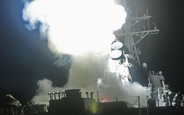 Φωτογραφίες του αμερικανικού Πενταγώνου από την εκτόξευση ΤΟΜΑΧΩΚ από το αντιτορπιλικό USS Barry (DDG 52) . Είναι ένας από τους 112 πυραύλους που εκτοξεύτηκαν από αμερικανικά και βρετανικά πλοία και υποβρύχια και έπληξαν 20 ραντάρ και αντιαεροπορικά κατά μήκος των μεσογειακών ακτών της Λιβύης.