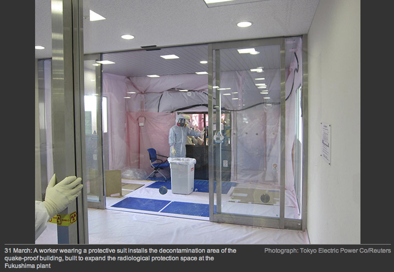 Ο βρετανικός Guardian, δημοσιεύει μία σειρά φωτογραφιών μέσα από το εργοστάσιο της Φουκουσίμα. Στη πρώτη διακρίνεται ένας εργάτης να δείχνει τη ρωγμή που έχει προκληθεί,εντός του πυρηνικού εργοστασίου.