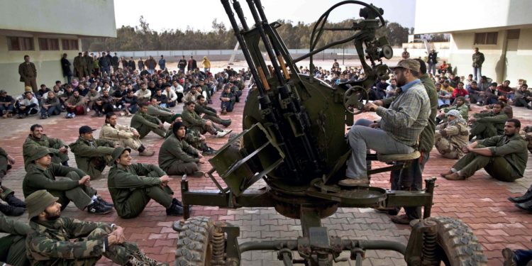Σε ερώτηση για το ενδεχόμενο στρατιωτικής βοήθειας ή εξοπλισμού των αντικαθεστωτικών δυνάμεων ο γάλλος υπουργός δήλωσε ότι «μια τέτοια βοήθεια δεν είναι στην ημερήσια διάταξη γιατί δε συνάδει με την απόφαση 1973».