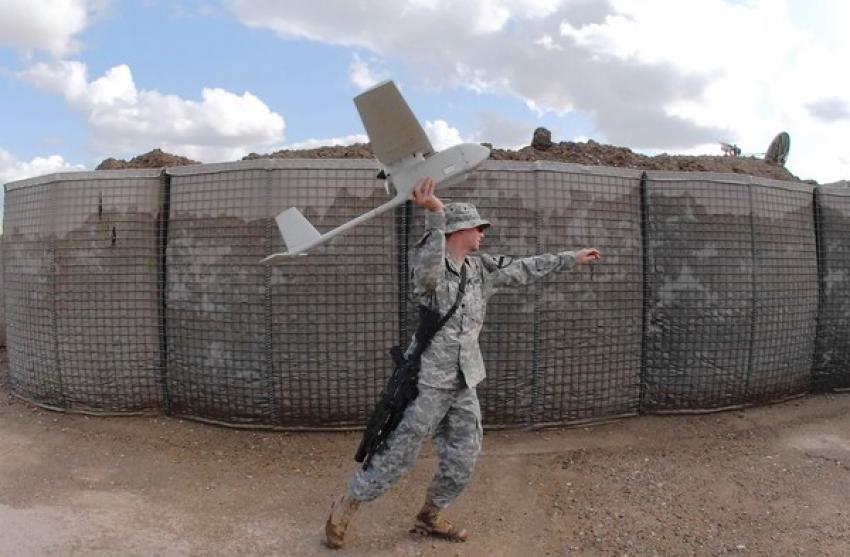 Ο αμερικανός στρατιώτης της φωτογραφίας,πετά ένα μικρό ρομποτικό αεροπλάνο,με το χέρι του,κάπου στο Αφγανιστάν. Το αεροπλάνο-μινιατούρα θα του μεταφέρει εικόνα για να αποφύγει αυτός και οι συνάδελφοί του πιθανή ενέδρα. Είναι ένα από τα τεχνολογικά επιτεύγματα της αμερικανικής -κυρίως- αμυντικής βιομηχανίας που κυριολεκτικά αναστήθηκε μετά την 11η Σεπτεμβρίου. Ειδικά οι μικρομεσαίες εταιρείες αμυντικού υλικού.