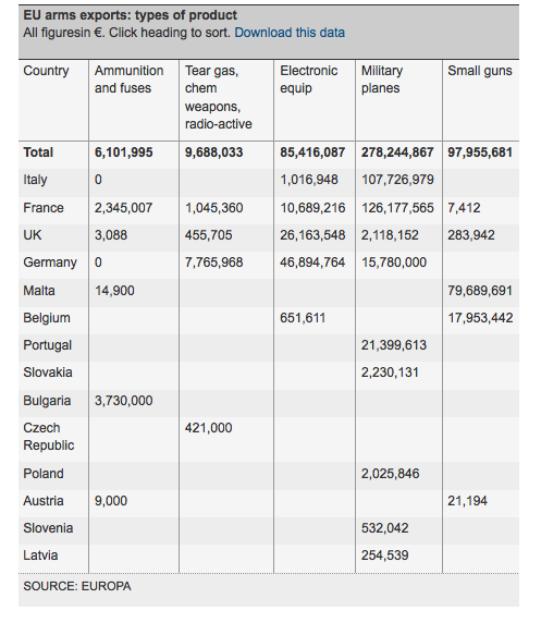 Οι πίνακες με τις ευρωπαϊκές πωλήσεις όπλων:
