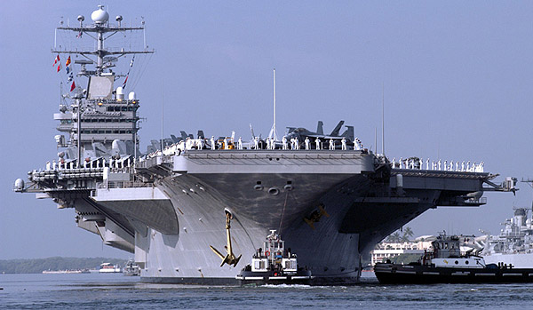 Είναι η πρώτη φορά που οι Ηνωμένες Πολιτείες, έχουν αναπτύξει δύναμη δύο αεροπλανοφόρων στα ύδατα απέναντι από το Ιράν και το Αφγανιστάν