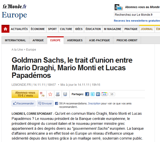 Οι τρεις τους συνδέονται με γνωριμία χρόνων. Ανήκαν στο «διευθυντήριο» της Goldman Sachs στην Ευρώπη ή αλλιώς στην «κυβέρνησης Sachs», καθώς η αμερικανική επενδυτική τράπεζα είχε φτιάξει ένα μοναδικό δίκτυο επιρροής στη «Γηραιά Ήπειρο», αναφέρει δημοσίευμα της εφημερίδας Monde.