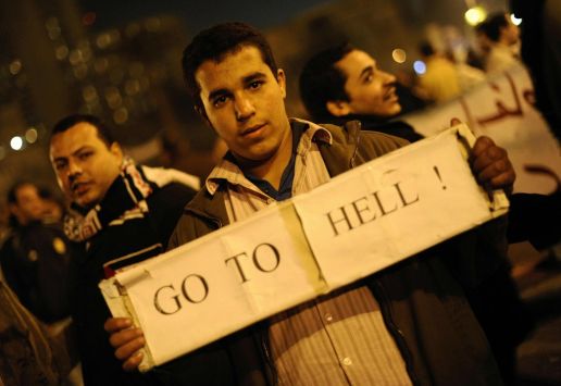 Η αντίδραση του καθεστώτος οι επτά νεκροί και οι εκατοντάδες τραυματίες ανάγκασαν τους διαδηλωτές να σηκώσουν πανό που χαρακτήριζαν τον Μουμπάρακ “εγκληματία πολέμου” και ζητούσαν την εκτέλεσή του.