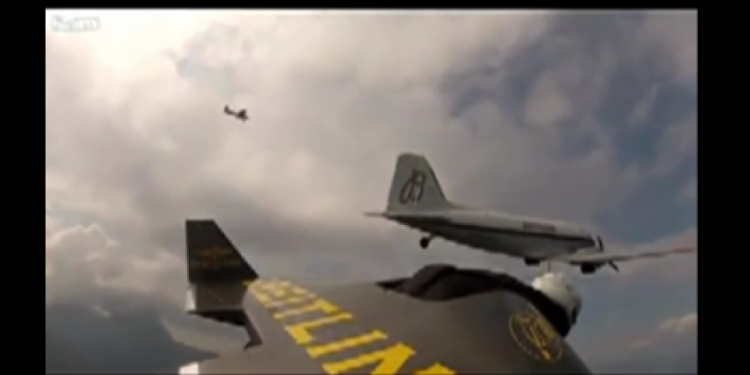 O Jetman της ομάδας Breitling ξαναχτυπά. Ο «ιπτάμενος άνθρωπος» επιβιβάστηκε σε ελικόπτερο, πήδηξε στο κενό και άρχισε να πετά πλάϊ σ΄ ένα αεροσκάφος DC 9. Την επόμενη φορά μπορεί και να επιβιβαστεί!