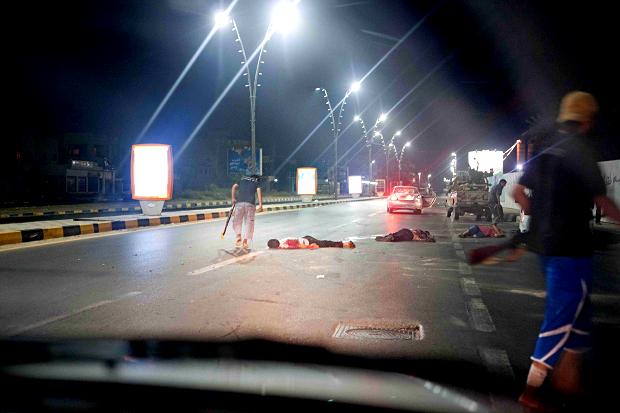 Η φωτογραφία είναι τραβηγμένη από κεντρικό δρόμο της Τρίπολης, όπου φαίνονται τα πτώματα εξεγερμένων που μόλις έχουν εκτελεστεί από δυνάμεις πιστές ακόμη και τη τελευταία στιγμή στον άφαντο συνταγματάρχη Καντάφι.