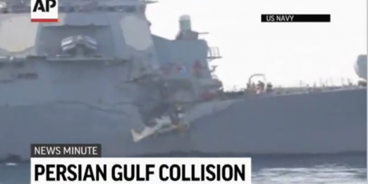 Μεγάλες ζημιές έχει υποστεί το αμερικανικό αντιτορπιλικό Porter, στη σύγκρουση που είχε με πετρελαιοφόρο πλοίο στα στενά του Ορμούζ. Τα πλάνα δόθηκαν στη δημοσιότητα από το ειδησεογραφικό πρακτορείο AP, και δείχνουν το ρήγμα που προκάλεσε η σύγκρουση.