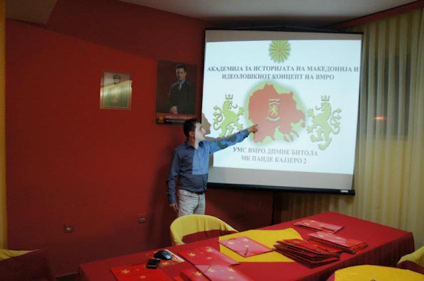Το γεγονός έγινε στο Μοναστήρι/Bitola στις 26.5.2012, με εισηγητές από την Ακαδημία Ιστορίας του κόμματος και τίτλο «Η ιστορία της Μακεδονίας και η ιδεολογική ταυτότητα του VMRO»