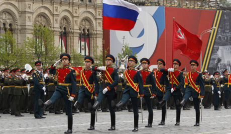 Χιλιάδες στρατιώτες, άρματα και φορτηγά που μεταφέρουν στρατηγικούς πυραύλους παρήλασαν σήμερα στην Κόκκινη Πλατεία της Μόσχας για να τιμήσουν τη νίκη του 1945 επί των ναζί, υπό το βλέμμα του Βλαντίμιρ Πούτιν ο οποίος ανέλαβε τη Δευτέρα τα καθήκοντά του.