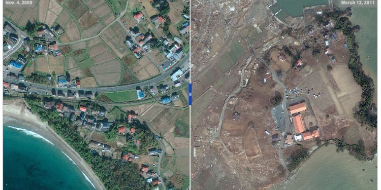 Οι δορυφορικές φωτογραφίες που ακολουθούν δείχνουν κατοικημένες περιοχές πριν τη καταστροφή και μετά απ΄ αυτή.