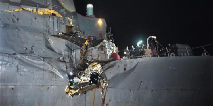Το ατύχημα σημειώθηκε το πρωί ανάμεσα στο USS Porter που συμμετέχει σε επιχειρήσεις για την θαλάσσια ασφάλεια και το ιαπωνικό δεξαμενόπλοιο, προστίθεται στην ανακοίνωση.