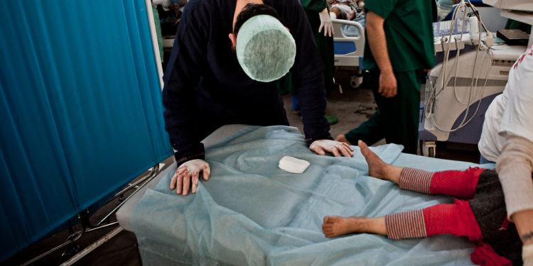 Οι δημοσιογράφοι μεταφέρθηκαν κατόπιν σε νοσοκομείο στο κέντρο της πρωτεύουσας όπου τους επιδείχθηκε ένα αναίσθητο βρέφος που νοσηλευόταν εκεί. Ένας άνδρας στο πλάι του κρεβατιού είπε ότι είναι ο θείος της μικρής και ότι τραυματίστηκε από μια πυραυλική επίθεση της Κυριακής. Όμως ένα μέλος του προσωπικού πέρασε ένα σημείωμα σε έναν δημοσιογράφο που έγραφε στα αγγλικά: «Πρόκειται για θύμα τροχαίου. Αυτή είναι η αλήθεια».