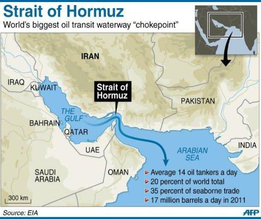 Το πόσο στρατηγικό σημείο είναι τα στενά του Ορμούζ φαίνεται από το χάρτη.Το 2011 απ΄ αυτό εξαιρετικά μικρό πέρασμα μεταφέρθηκαν 17 εκατομμύρια βαρέλια πετρέλαιο.