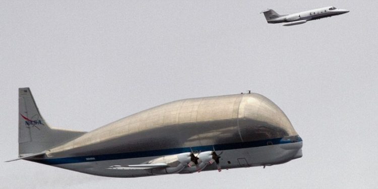 Το πραγματικά περίεργο αεροσκάφος ανήκει στη δύναμη της NASA. Είναι το …μεταγωγικό της αεροσκάφος με το οποίο μπορεί να μεταφέρει πολύ μεγάλα φορτία,όπως για παράδειγμα κομμάτια διαστημικού λεωφορείου!
