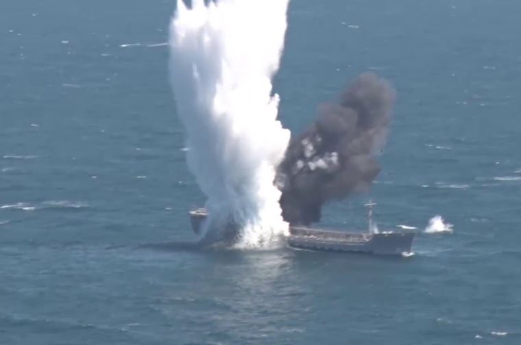 Οι τουρκικές ένοπλες δυνάμεις δημοσιοποίησαν εικόνες που δείχνουν ένα δεξαμενόπλοιο να βυθίζεται από τορπίλες προερχόμενες από υποβρύχιο του τουρκικού ναυτικού κατά τη διάρκεια μεγάλων ναυτικών ασκήσεων στη Μαύρη Θάλασσα.