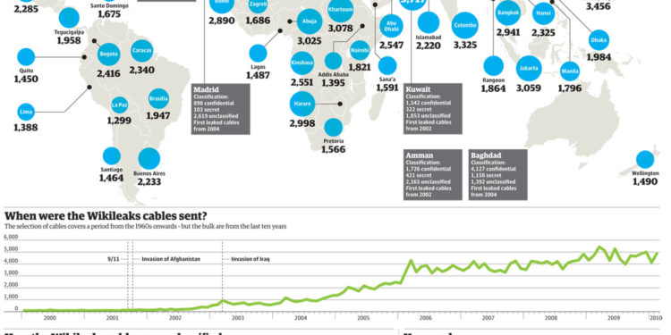 Πρόκειται για «250.000 απόρρητα αμερικανικά διπλωματικά τηλεγραφήματα», γράφει η New York Times, στην οποία το WikiLeaks έδωσε πρόσβαση στα απόρρητα έγγραφα όπως και σε άλλες μεγάλες εφημερίδες του διεθνούς Τύπου.