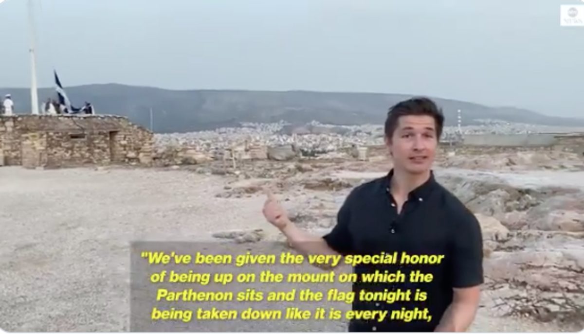 Στην υποστολή της σημαίας στην Ακρόπολη όπως γίνεται κάθε βράδυ βρέθηκε το βράδυ της Κυριακής το μεγάλο αμερικανικό δίκτυο ABC προκειμένου να ενημερώσει τους τηλεθεατές του για το σημερινό άνοιγμα όλων των αρχαιολογικών χώρων μετά την άρση των περιοριστικών μέτρων λόγω κορονοϊού.