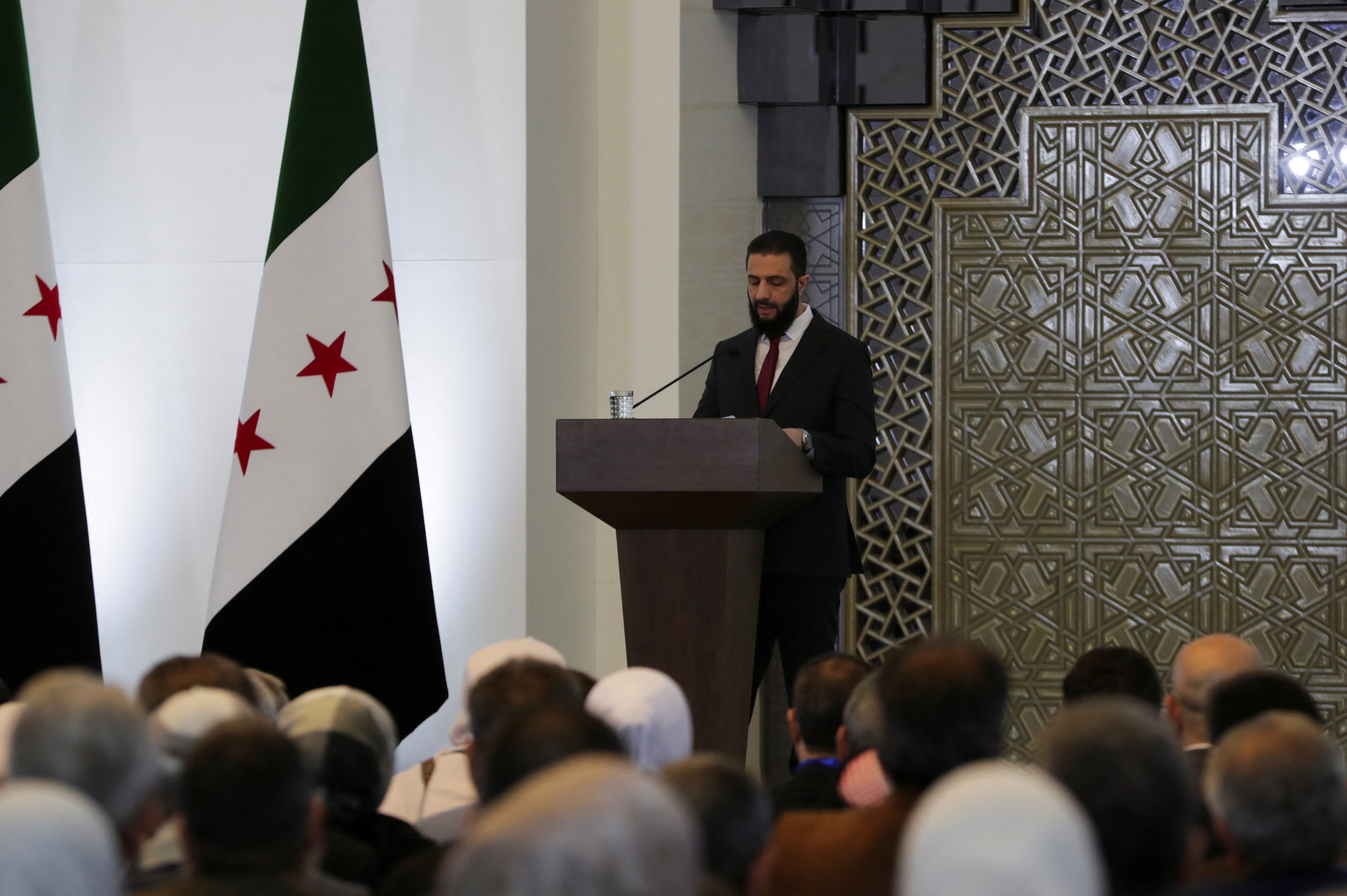 Ο αλ Σάρα επικαλέστηκε τη νομιμότητα που κέρδισε από την επανάσταση για να ανακηρυχθεί μεταβατικός πρόεδρος της χώρας, ενώ τονίζει ότι θα πραγματοποιηθούν εκλογές, αν και εξηγεί ότι χρειάζονται έως και πέντε χρόνια για να οργανωθούν σωστά.