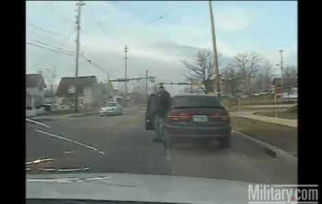 Συγκλονιστικό το βίντεο από το Οχάϊο των ΗΠΑ. Ένα περιπολικό σταματά ένα ύποπτο αυτοκίνητο. Ο οδηγός του ξαφνικά κατεβαίνει και αρχίζει να τους “γαζώνει” με Καλάσνικοφ! Οι αστυνομικού ανταποδίδουν τα πυρά κι εκείνος πέφτει στην άσφαλτο.
