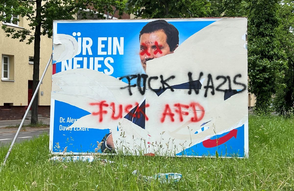 Σε ανάλογο πνεύμα, στο πλέον εξέχον στέλεχος της πιο δεξιάς πτέρυγας της AfD και αρχηγό της τοπικής οργάνωσης του κόμματος στην Θουριγγία Μπγιερν Χέκε επιβλήθηκε από το δικαστήριο πρόστιμο ύψους 13.000 ευρώ, για την χρήση απαγορευμένων ναζιστικών εκφράσεων σε δημόσιες εμφανίσεις του. Στο κρατίδιο διεξάγονται την 26η Μαΐου δημοτικές εκλογές που πλέον αποκτούν ιδιαίτερη σημασία, καθώς στα ανατολικά κρατίδια η AfD προεξοφλούσε ότι μπορεί να εξασφαλίσει συμβολικές νίκες και πρωτιές σε επίπεδο τοπικών αιρετών.