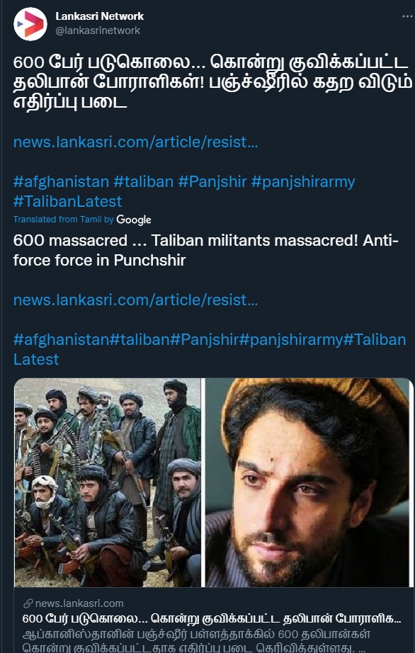 Taliban terrorists trying to enter #Panjshir were chased out by the #PanjshirResistance Force.#Afganistan— Er Yuvrajsinh Raulji🇮🇳 (@ImErYuvrajsinh) September 5, 2021